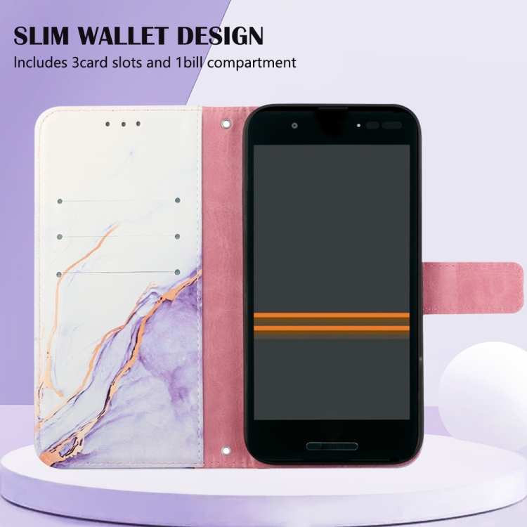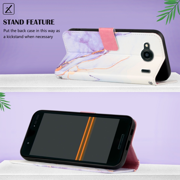 Funda de Cuero con Tapa para Kyocera Qua Phone Qx Kyv42 Pt003 Patrón Mármol (Blanco Púrpura)
