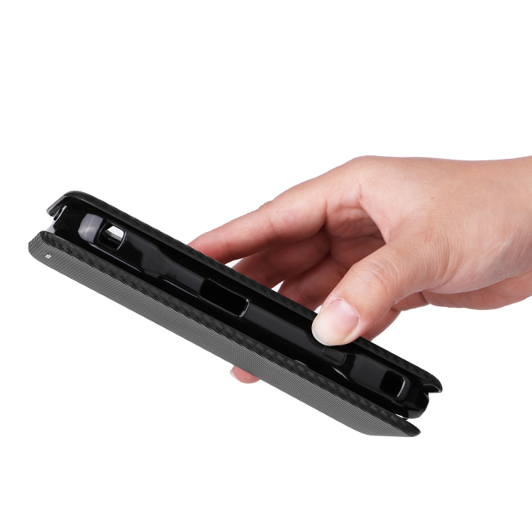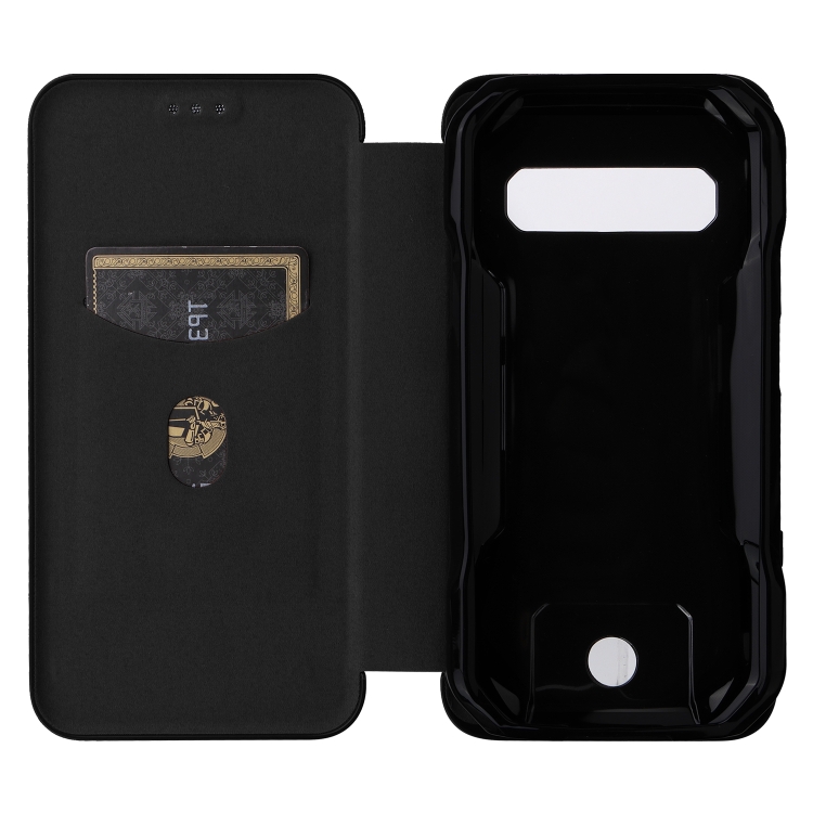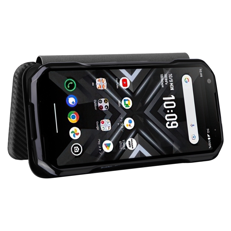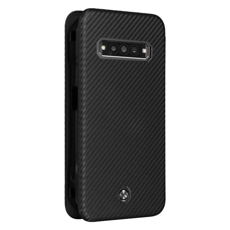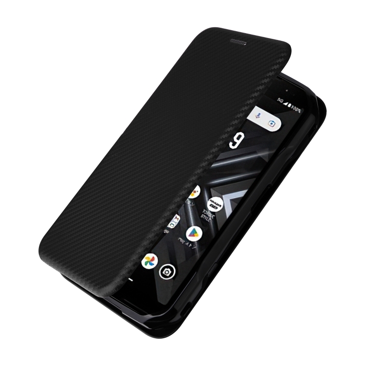 Funda de Cuero con Tapa para Kyocera Torque G06 Kyg03 con Textura de Fibra de Carbono (Negro)