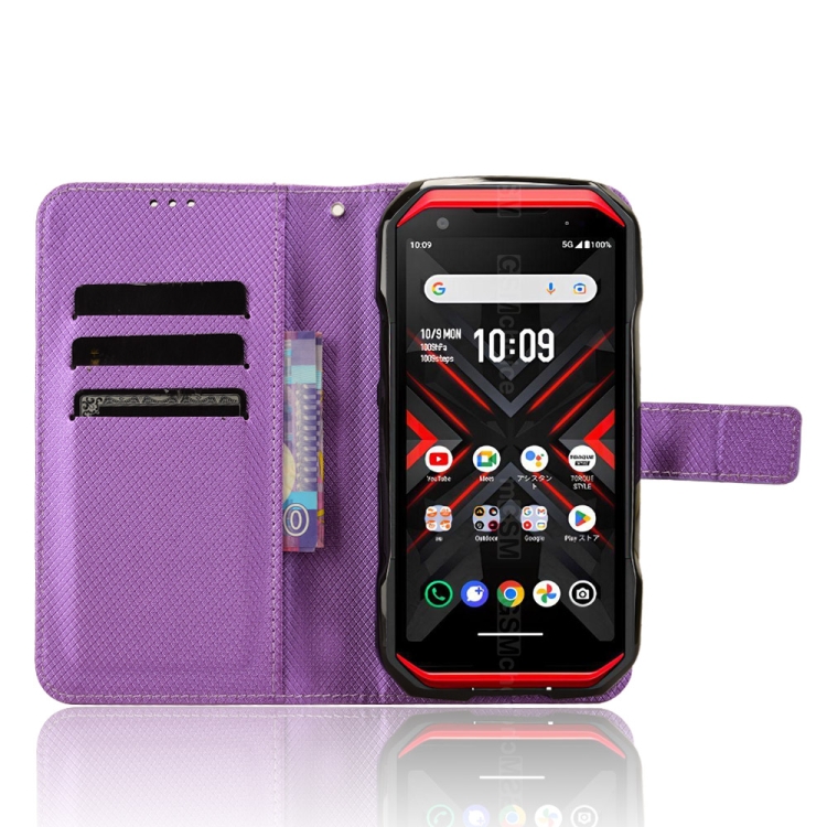 Funda de Cuero Kyocera Torque G06 Kyg03 con Textura de Diamante (Púrpura)