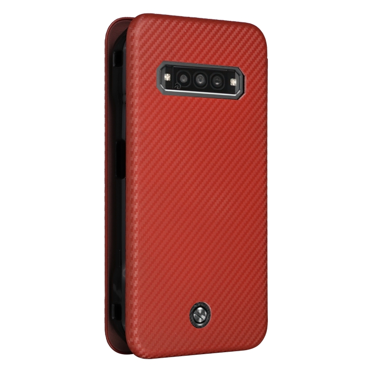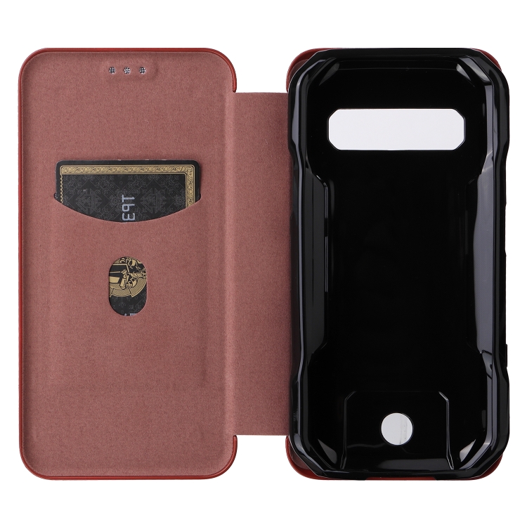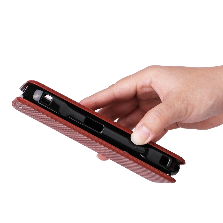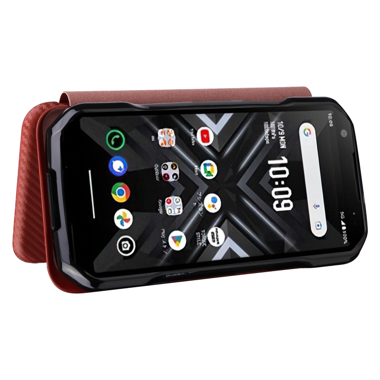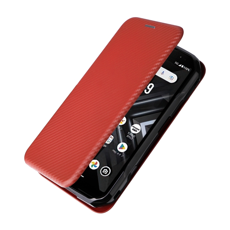 Funda de Cuero con Tapa para Kyocera Torque G06 Kyg03 con Textura de Fibra de Carbono (Marrón)