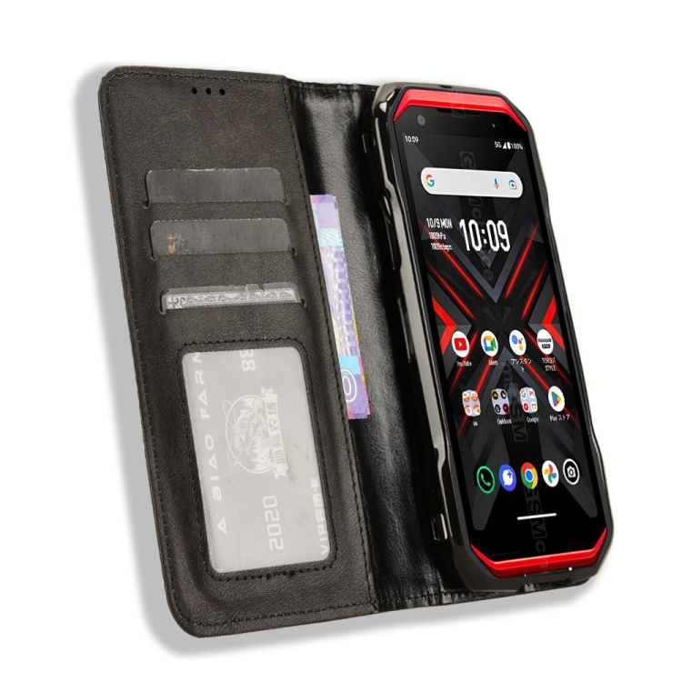 Funda para Teléfono Kyocera Torque G06 Kyg03 Cuero Textura Retro Hebilla Magnética (Negro)