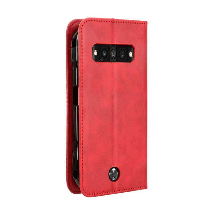 Funda para Kyocera Torque G06 Kyg03 de Cuero con Textura Retro y Hebilla Magnética (Rojo)