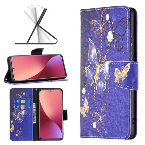 Para la Caja de Teléfono de Cuero de Dibujo de Dibujo Xiaomi 12 (Mariposa Morada)