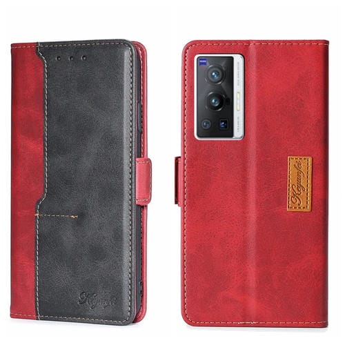 Para la Caja de Teléfono de Cuero de Hebilla Lateral de Color Vivo X70 Pro Contrast (Rojo + Negro)