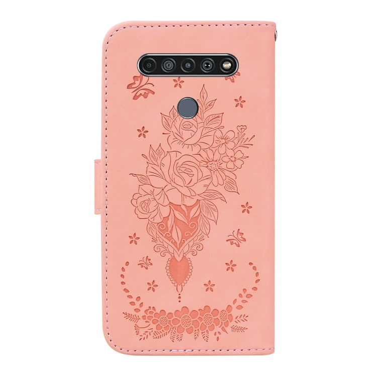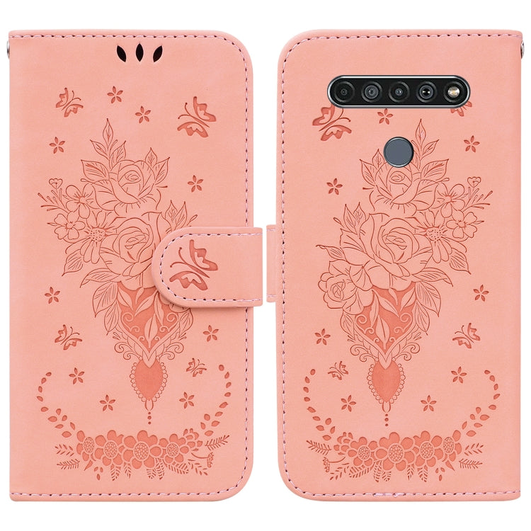 Funda de Cuero en Relieve Mariposa para LG K61 Butterfly (Rosa)