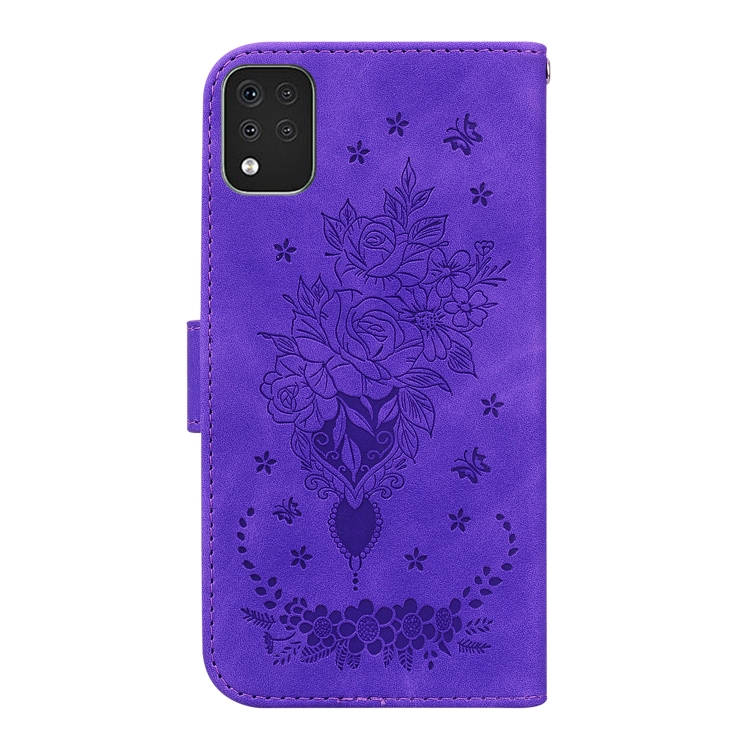 Funda de Cuero En Relieve Rose para LG K42 Butterfly (Púrpura)