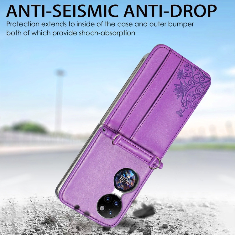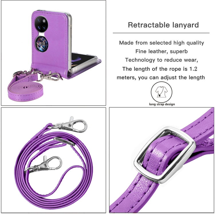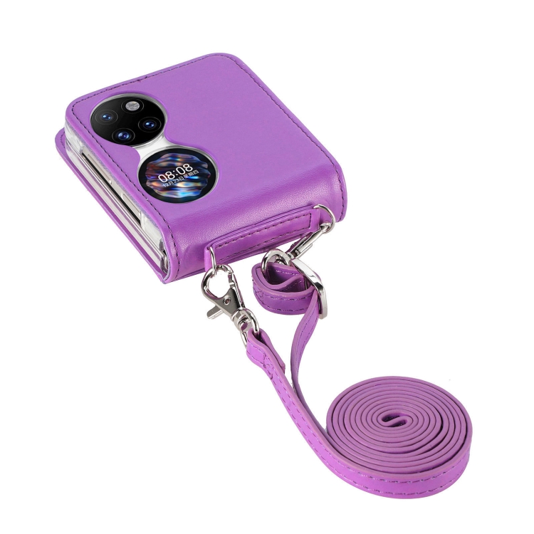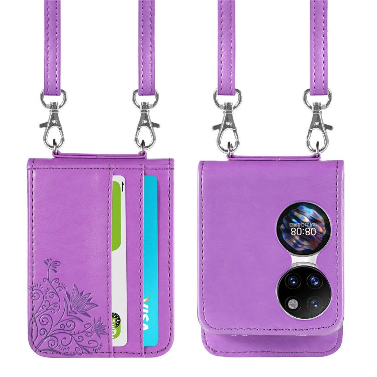 Caja para Teléfono Plegable Huawei P50 con Tarjeta Plegable en Relieve Diagonal (Púrpura)