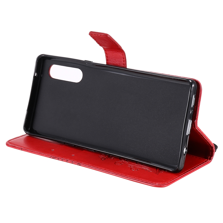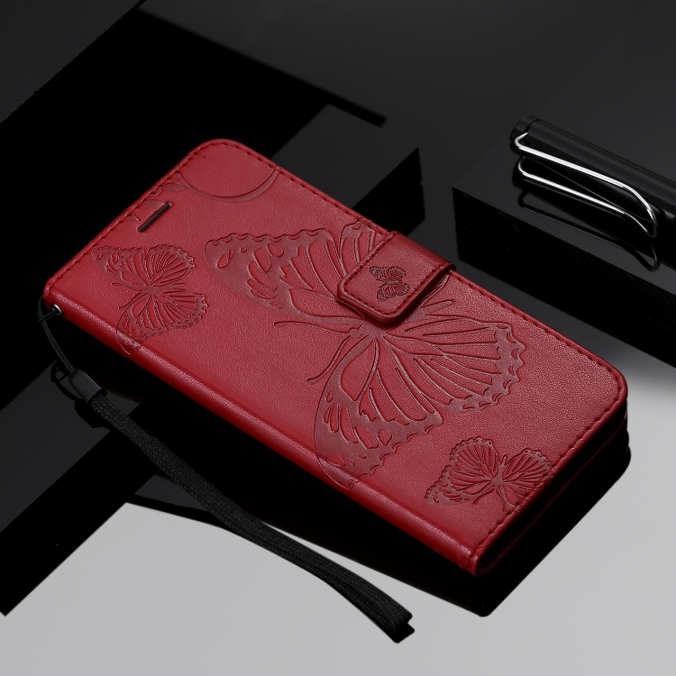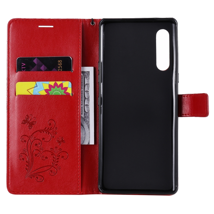 Funda de Cuero para LG G9 3D Mariposa con Tapa Horizontal, Soporte, Ranura para Tarjeta y Cordón (Rojo)