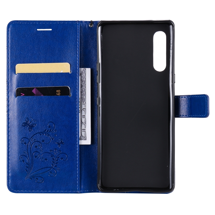 Funda de Cuero para LG G9 con Tapa Horizontal, Patrón Mariposa 3D, Soporte, Ranura para Tarjeta, Billetera y Cordón (Azul)