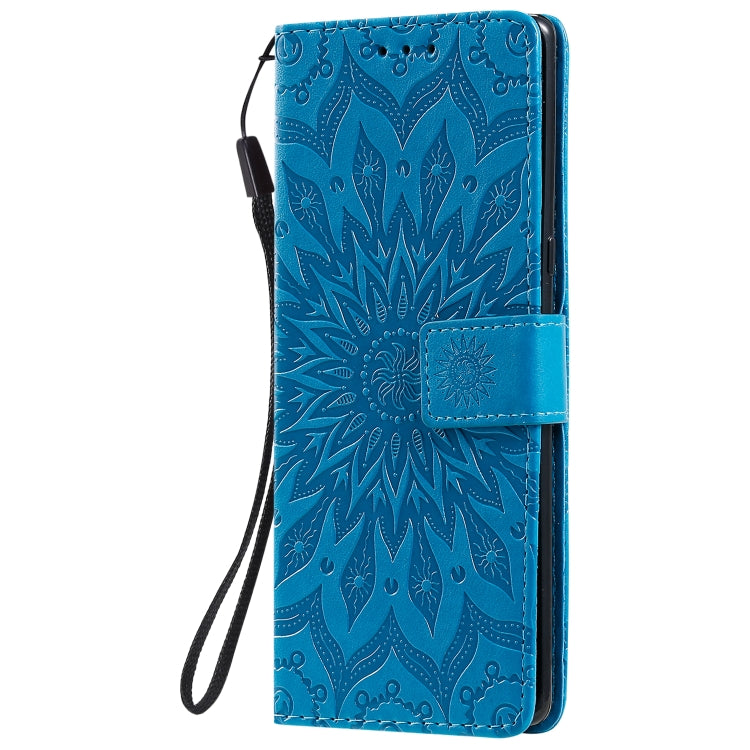 Funda de Cuero PU para LG G9 con Patrón de Girasol, Tapa Horizontal, Soporte, Ranuras para Tarjetas y Billetera (Azul)