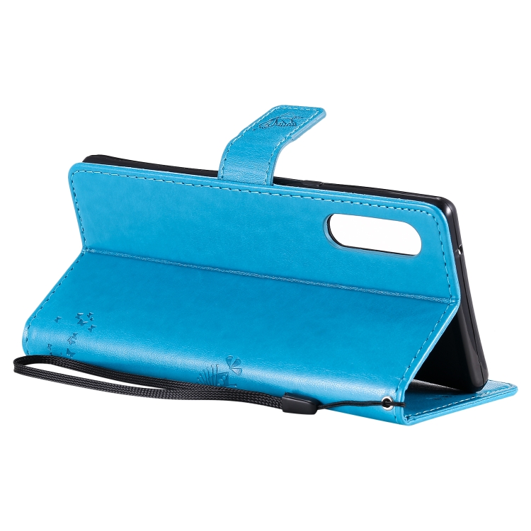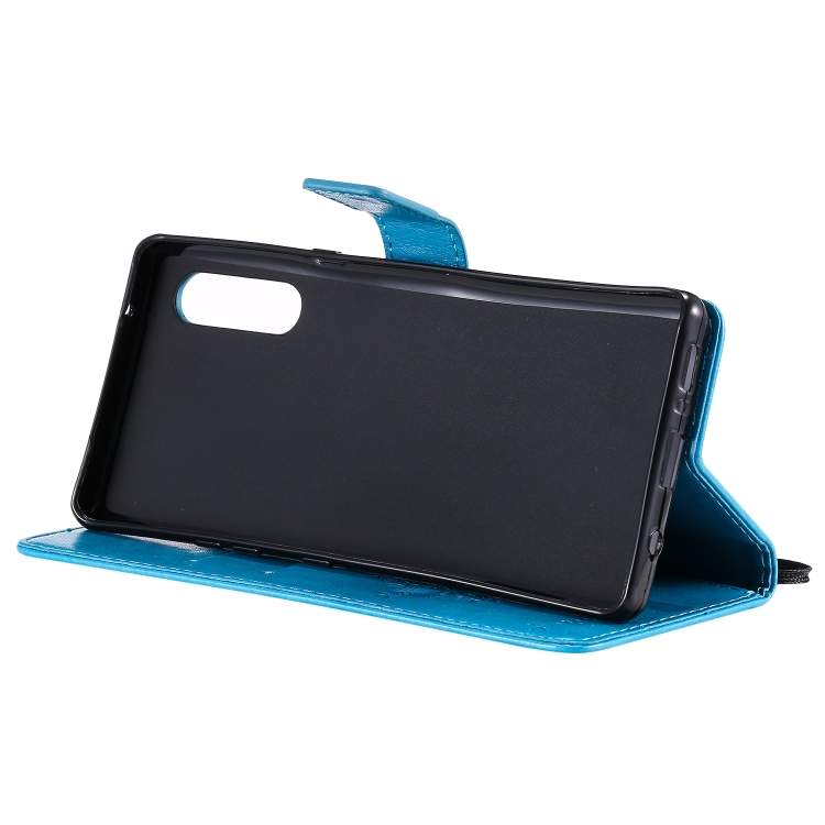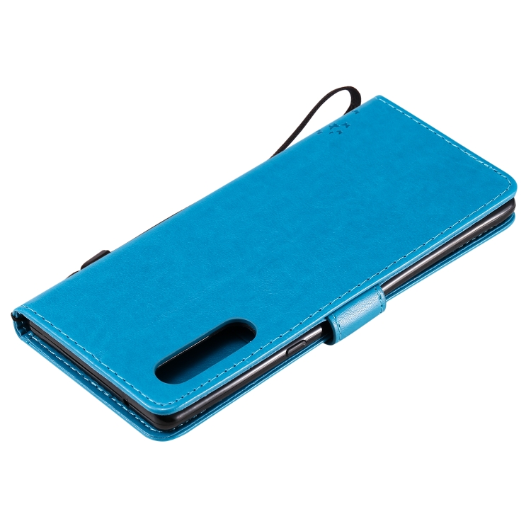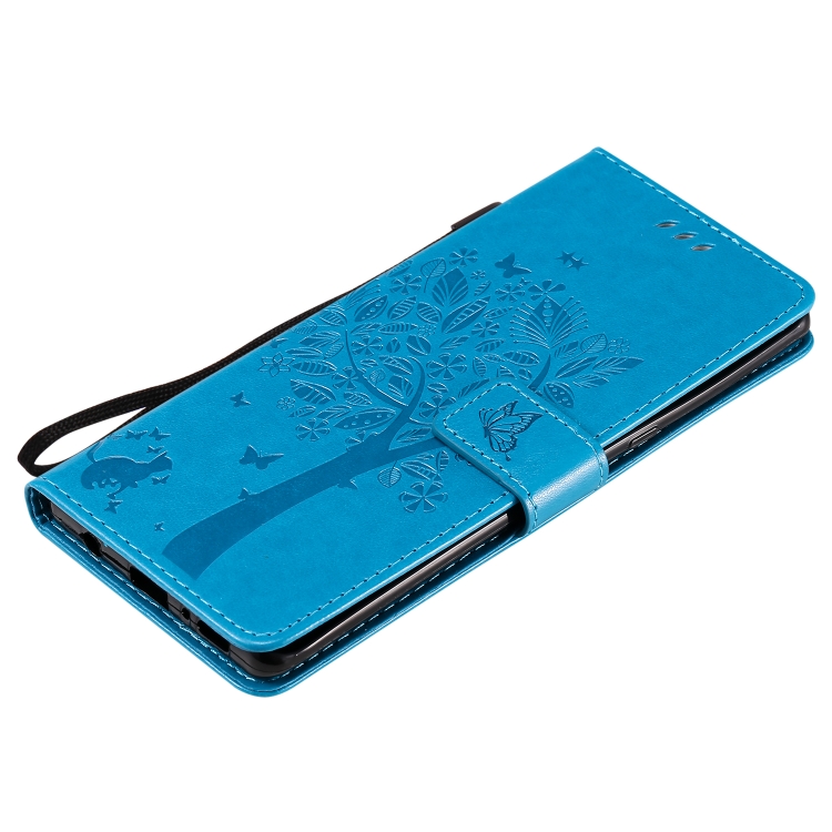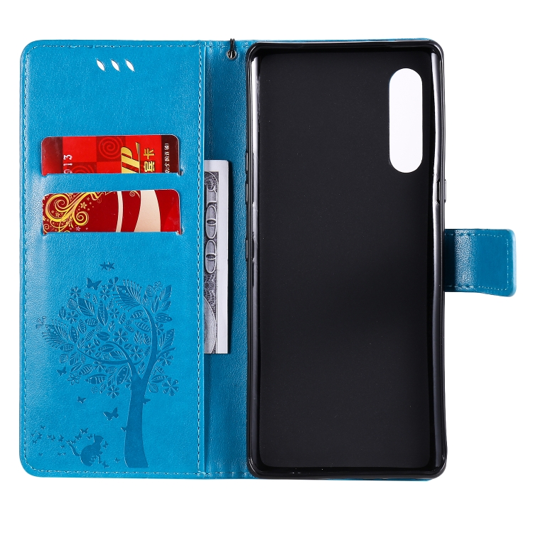 Funda de Cuero para LG G9 Tree & CAT con Tapa Horizontal, Soporte, Ranuras para Tarjetas, Billetera y Cordón (Azul)