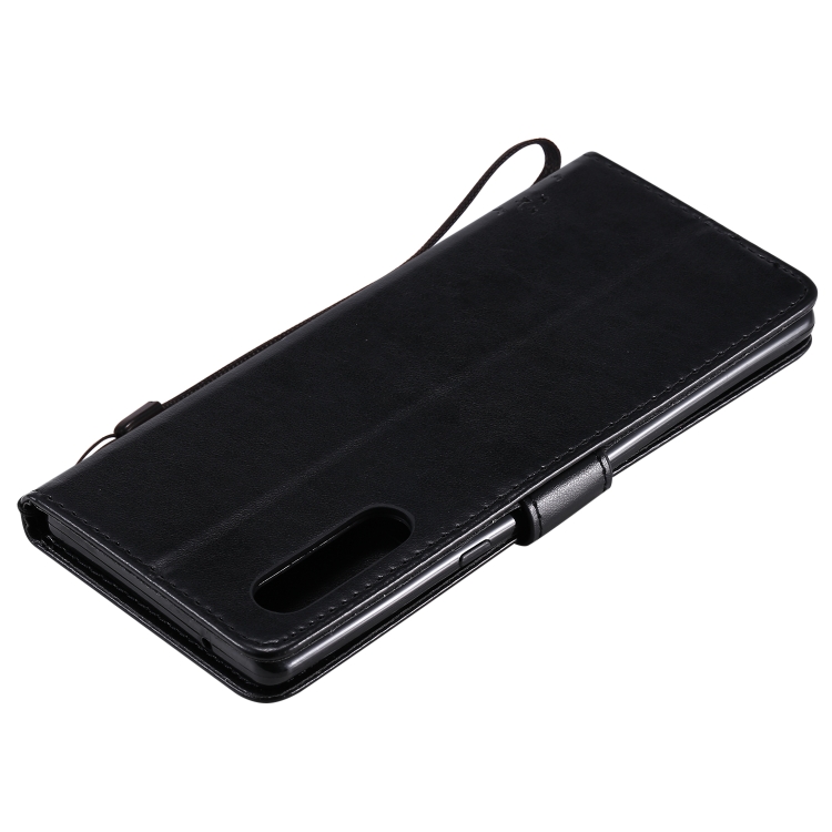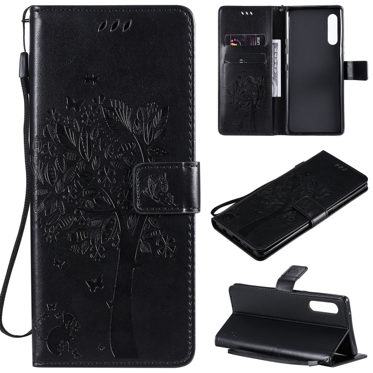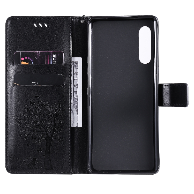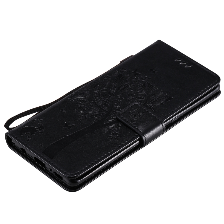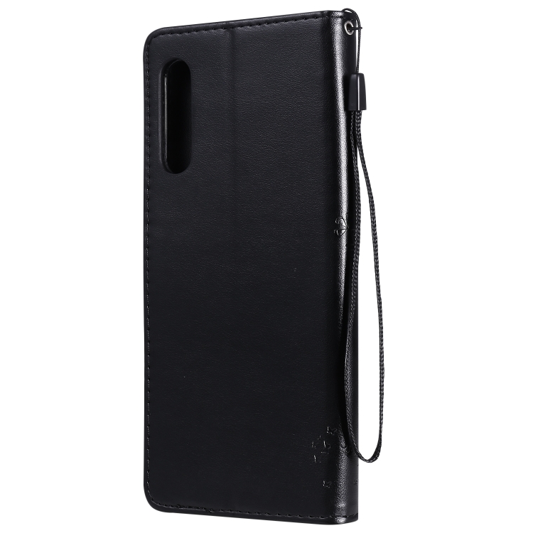 Funda de Cuero para LG G9 Tree & CAT con Tapa Horizontal, Soporte, Ranuras para Tarjetas y Cordón (Negro)