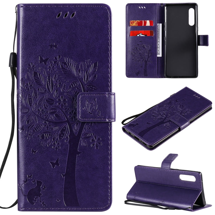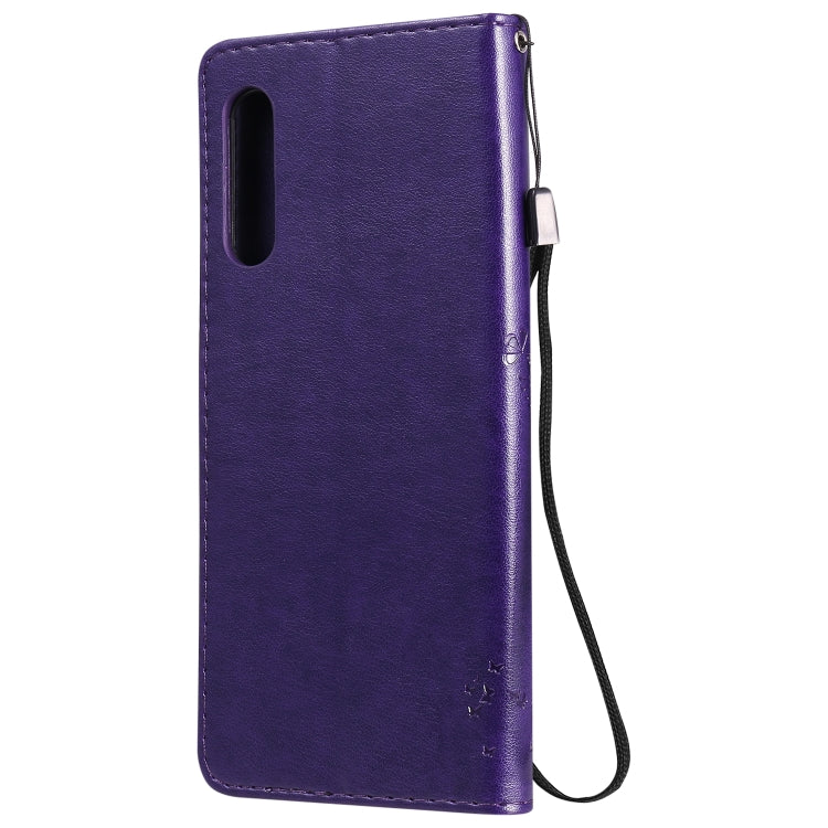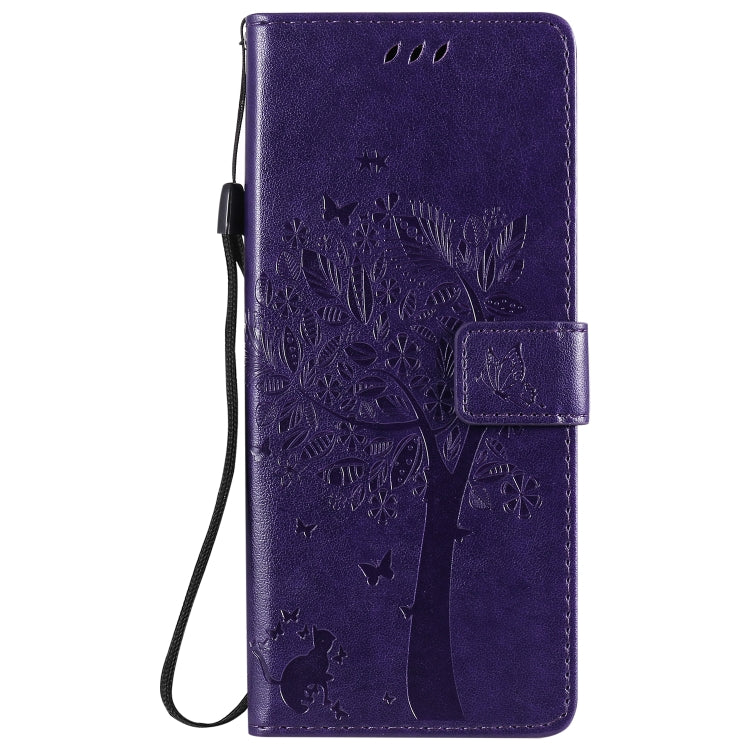 Funda de Cuero para LG G9 Tree & CAT con Tapa Horizontal, Soporte, Ranuras para Tarjetas, Billetera y Cordón (Púrpura)