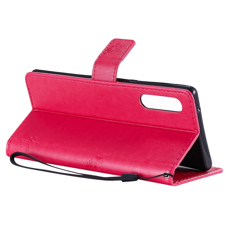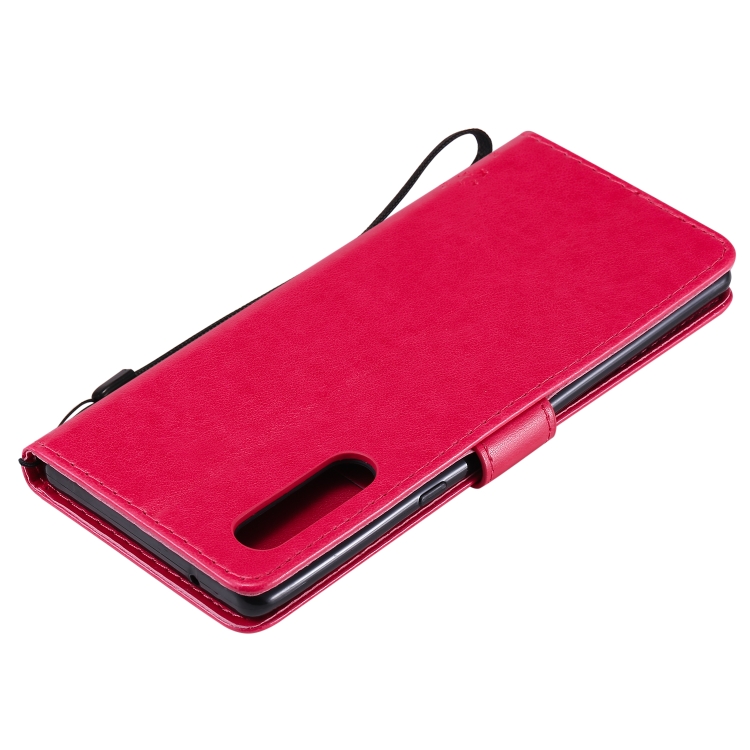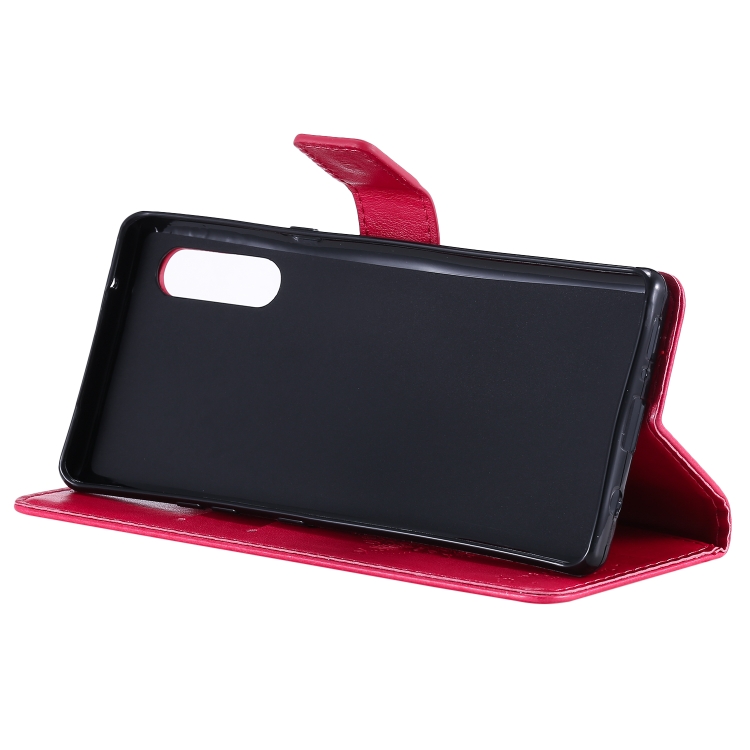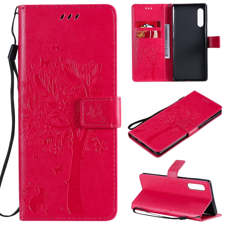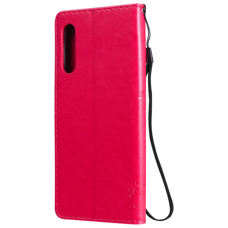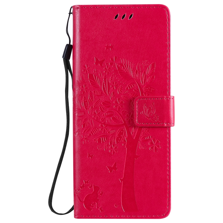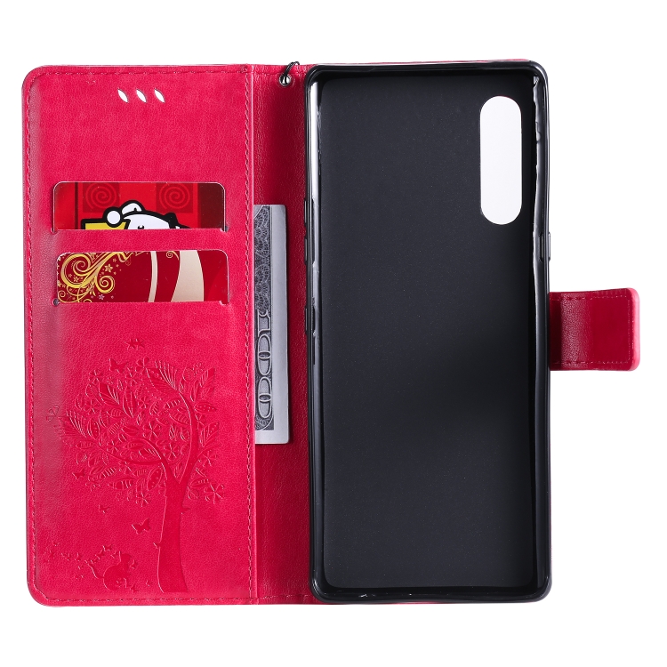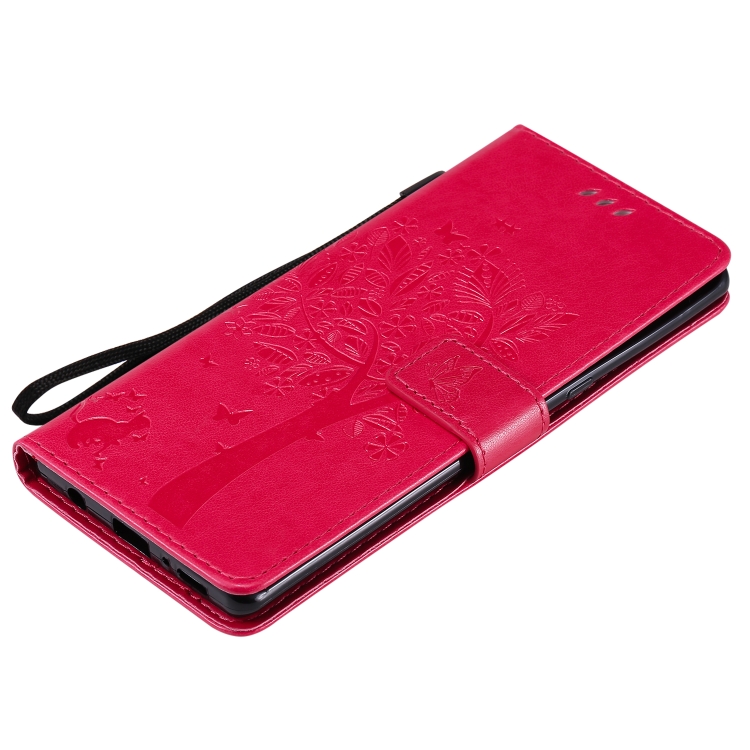 Funda de Cuero para LG G9 Tree & CAT con Tapa Horizontal, Soporte, Ranuras para Tarjetas, Billetera y Cordón (Rosa Roja)