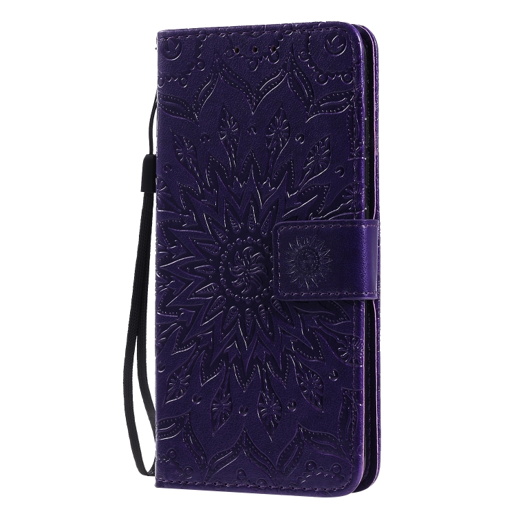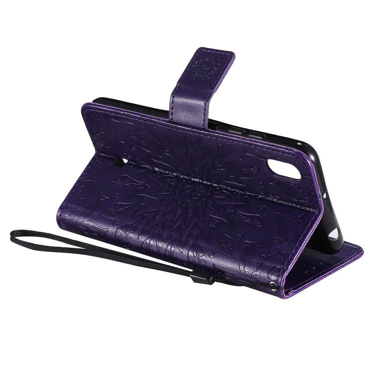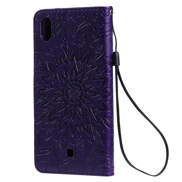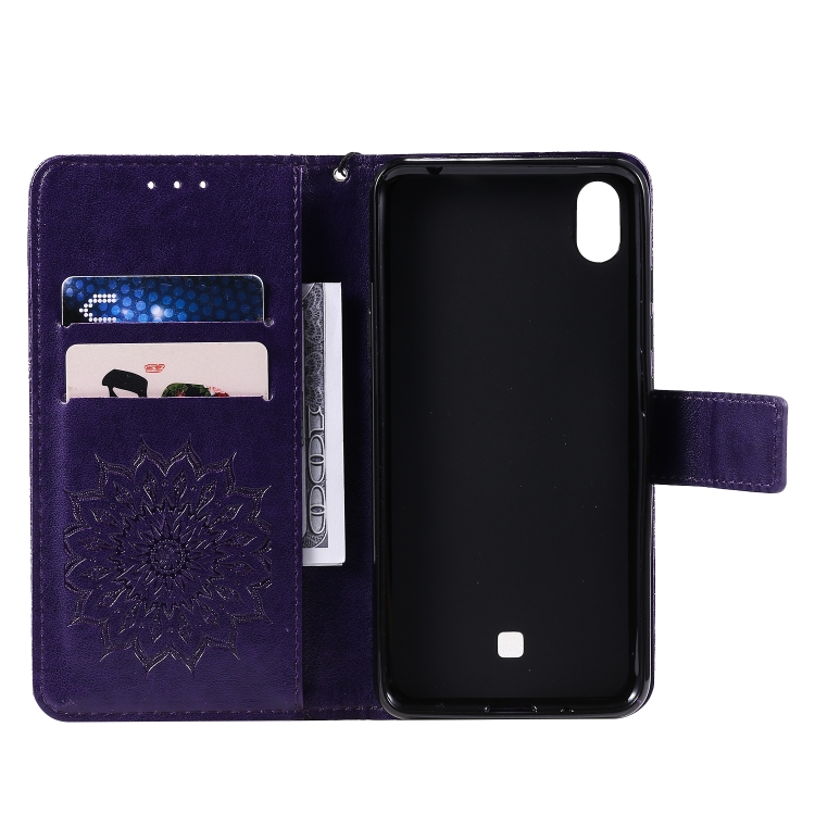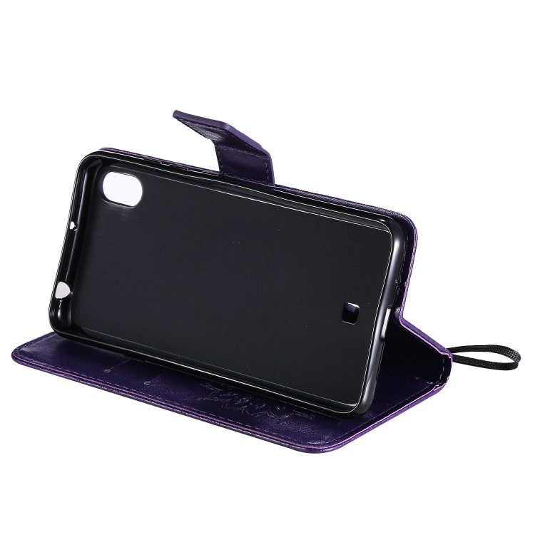 Estuche Cuero Pu para LG K20 (2019) con Tapa Horizontal, Soporte, Ranuras para Tarjetas y Billetera (Púrpura)