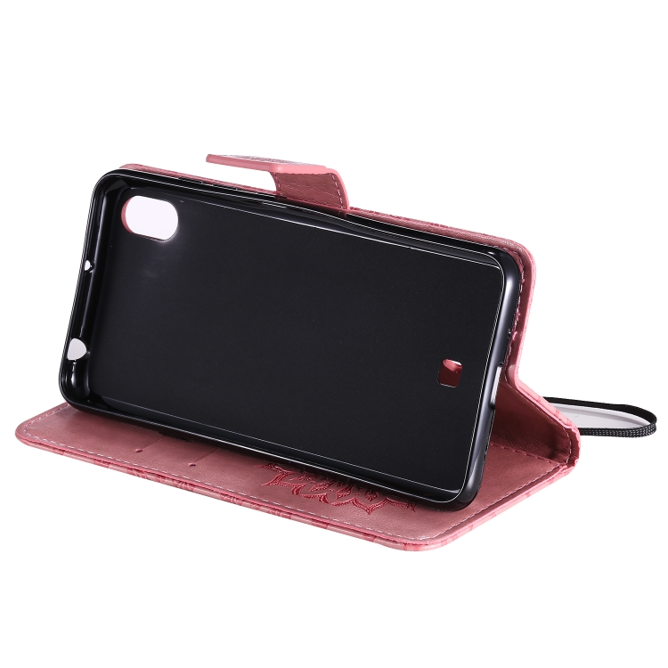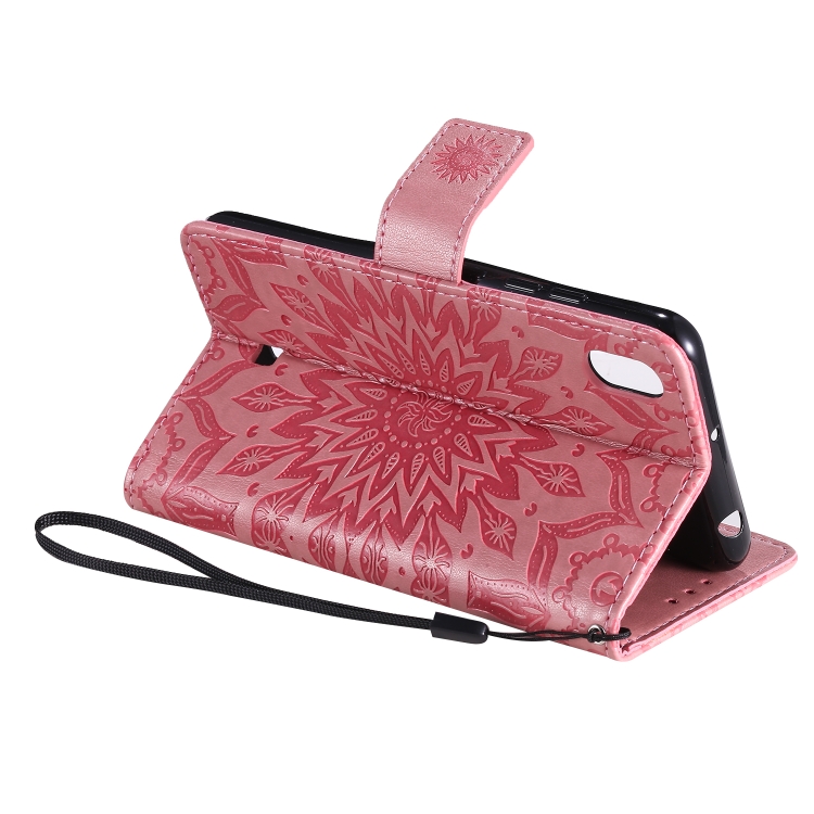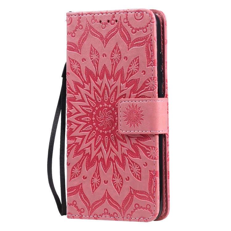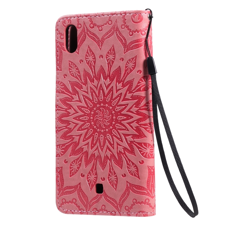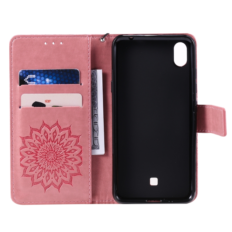 Estuche Cuero Pu LG K20 (2019) Tapa Horizontal Girasol Soporte Ranuras Tarjetas Billetera Cordón (Rosa)