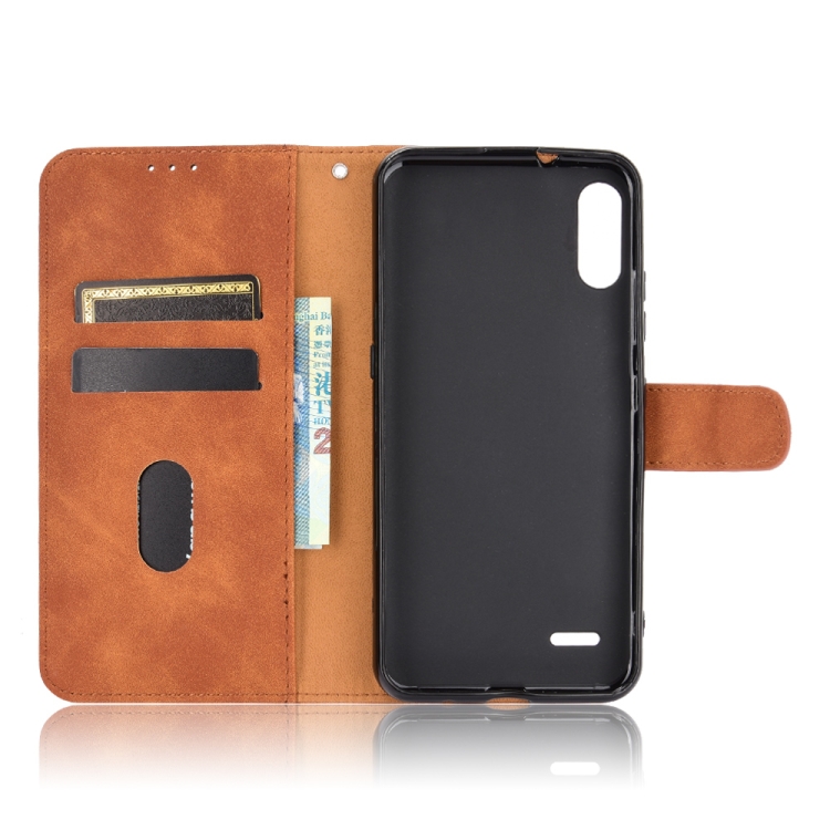 Estuche Cuero Pu LG K22 Textura Piel de Becerro Abatible Horizontal con Hebilla Magnética y Soporte (Marrón)