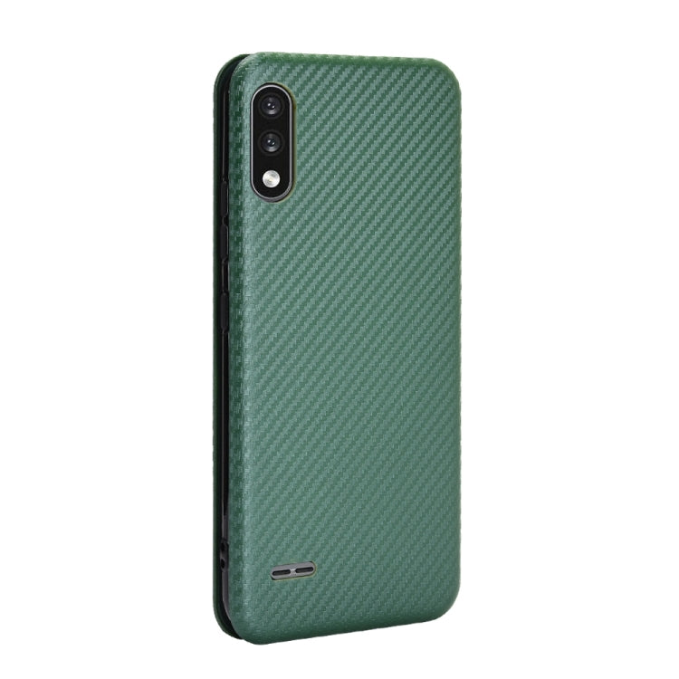 Funda de Cuero para LG K22 con Tapa Magnética Horizontal, Textura Fibra de Carbono, TPU + PC + PU, Ranura para Tarjeta (Verde)