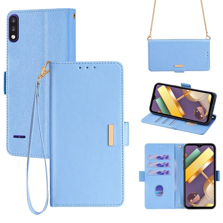 Funda de Cuero para Teléfono LG K22 con Cadena Cruzada (Azul)