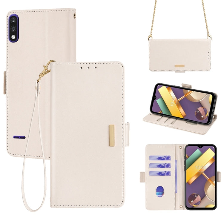 Funda de Cuero para Teléfono LG K22 con Cadena Cruzada (Blanco)