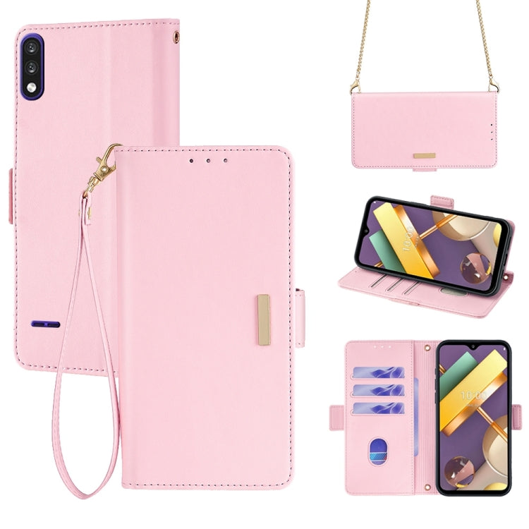Funda de Cuero para LG K22 con Cadena Cruzada (Rosa)
