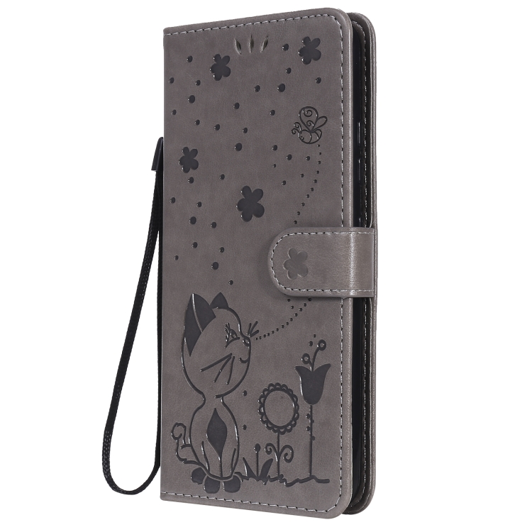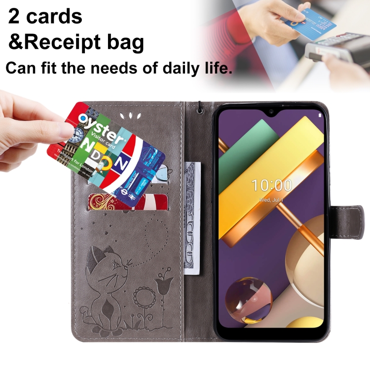 Funda de Cuero para LG K22 y K22 Plus con Patrón CAT Bee, Tapa Horizontal, Soporte y Ranuras para Tarjetas