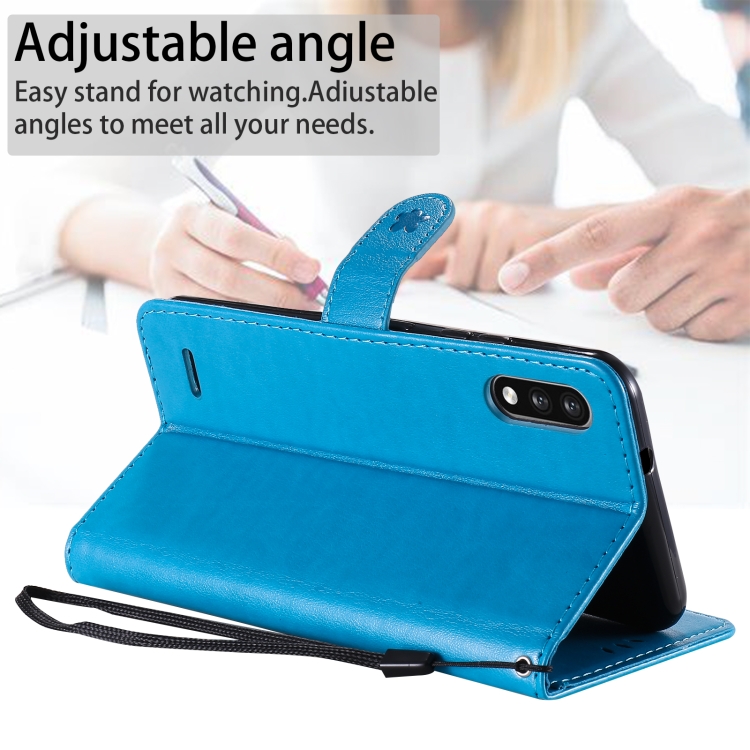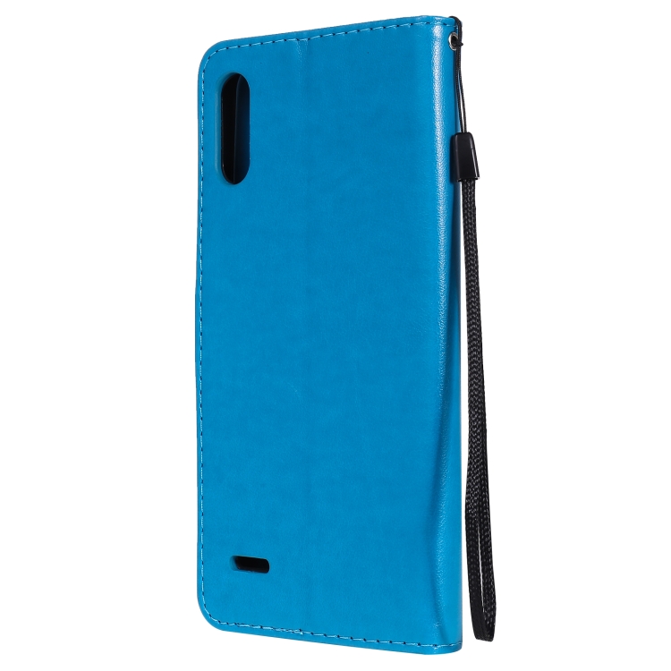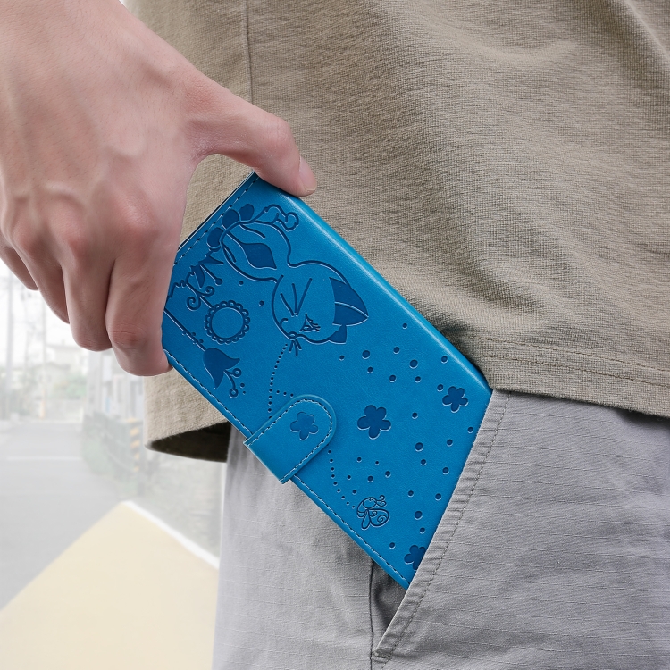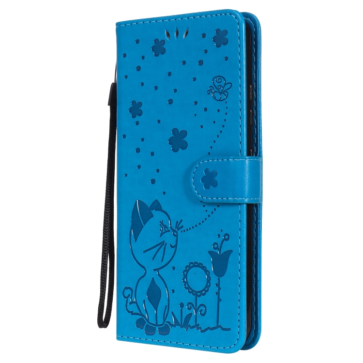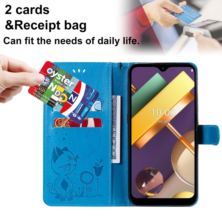 Funda de Cuero para LG K22 y K22 Plus CAT Bee con Tapa Horizontal, Soporte y Ranuras (Azul)