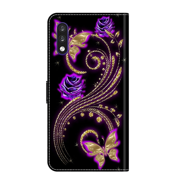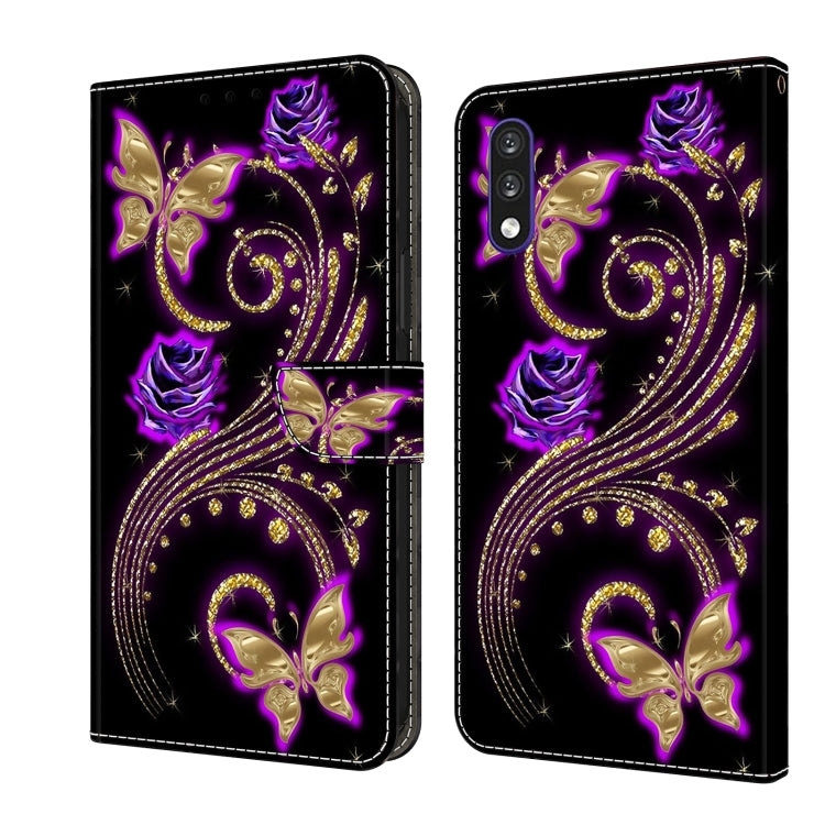 Funda Protectora de Cuero para LG K22 K22 Plus Crystal 3D a Prueba de Golpes (Mariposa de Flor Púrpura)