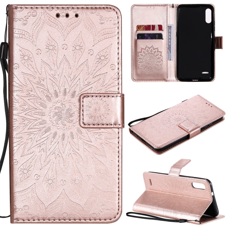 Funda de Cuero para LG K22 / K22 Plus con Tapa Horizontal, Ranura para Tarjeta, Soporte, Billetera y Cordón (Oro Rosa)