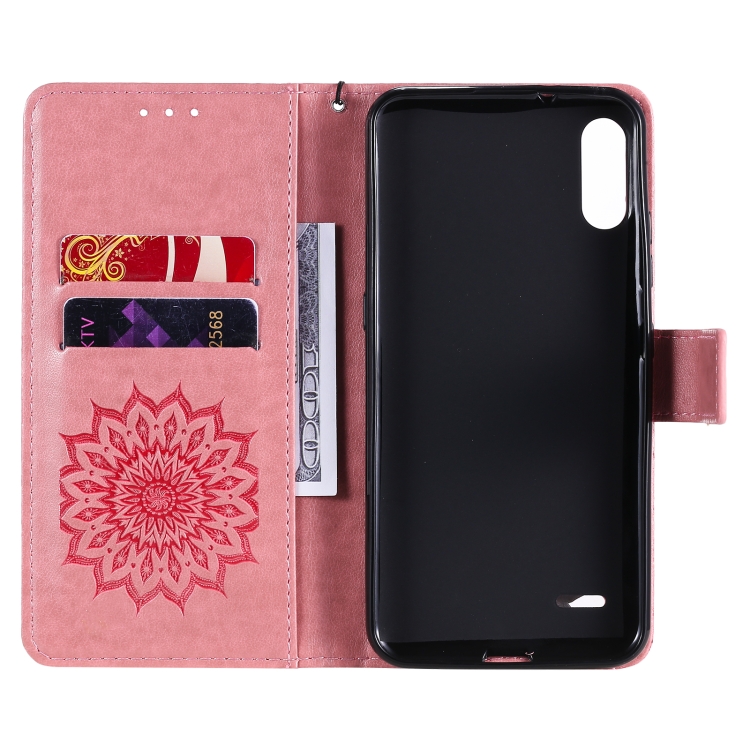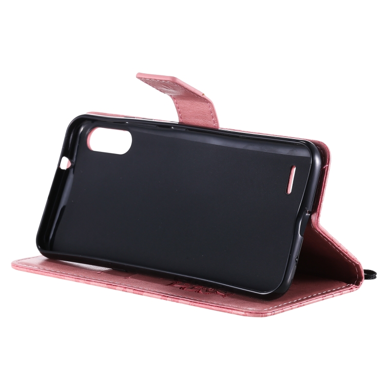 Funda de Cuero para LG K22 / K22 Plus con Tapa Horizontal, Ranura para Tarjeta, Soporte y Cordón (Rosa)