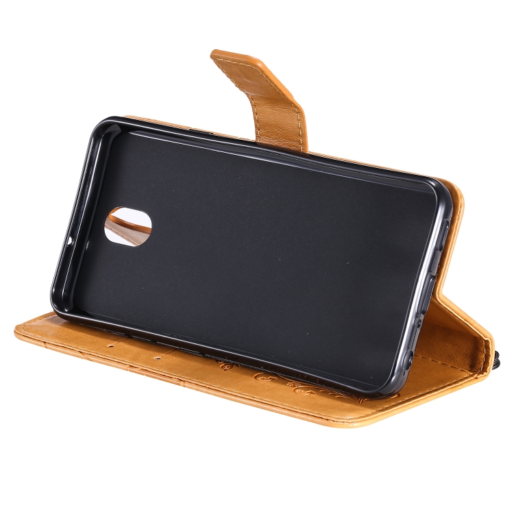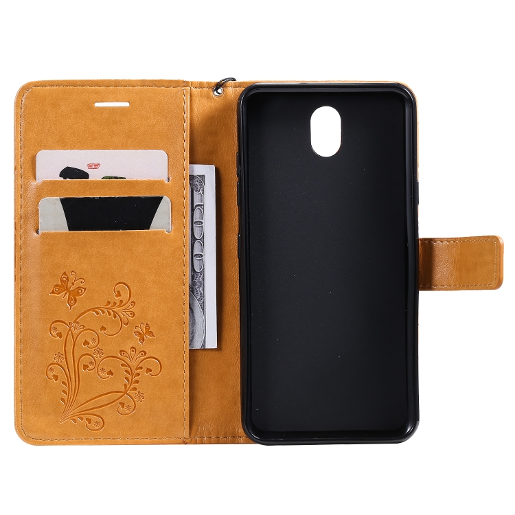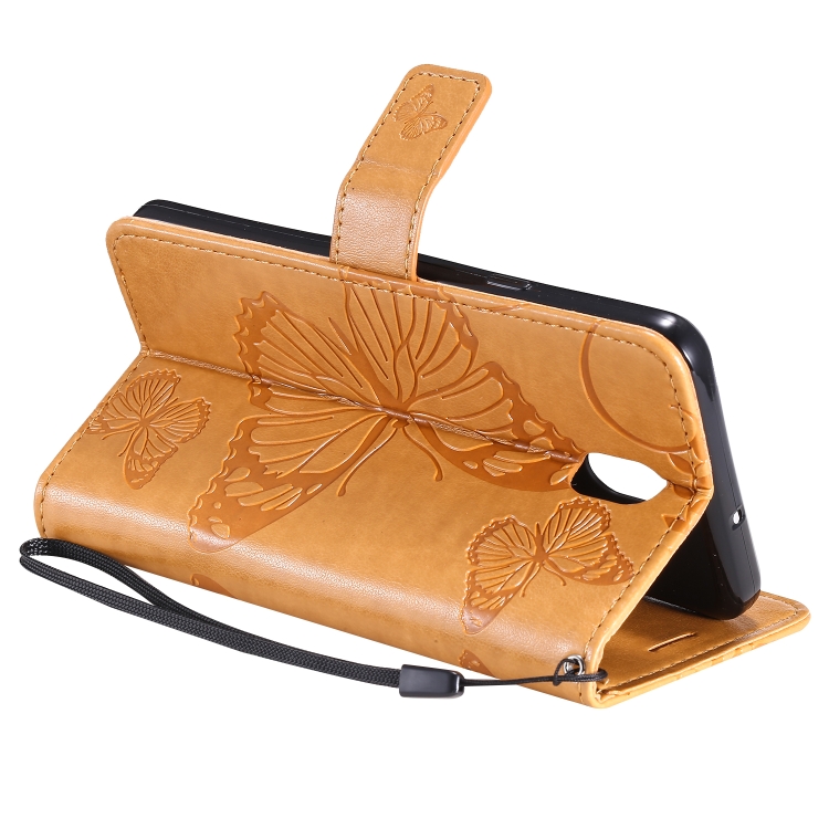 Estuche Cuero PU para LG K30 con Tapa Horizontal, Soporte, Ranuras para Tarjetas y Cordón (Amarillo)