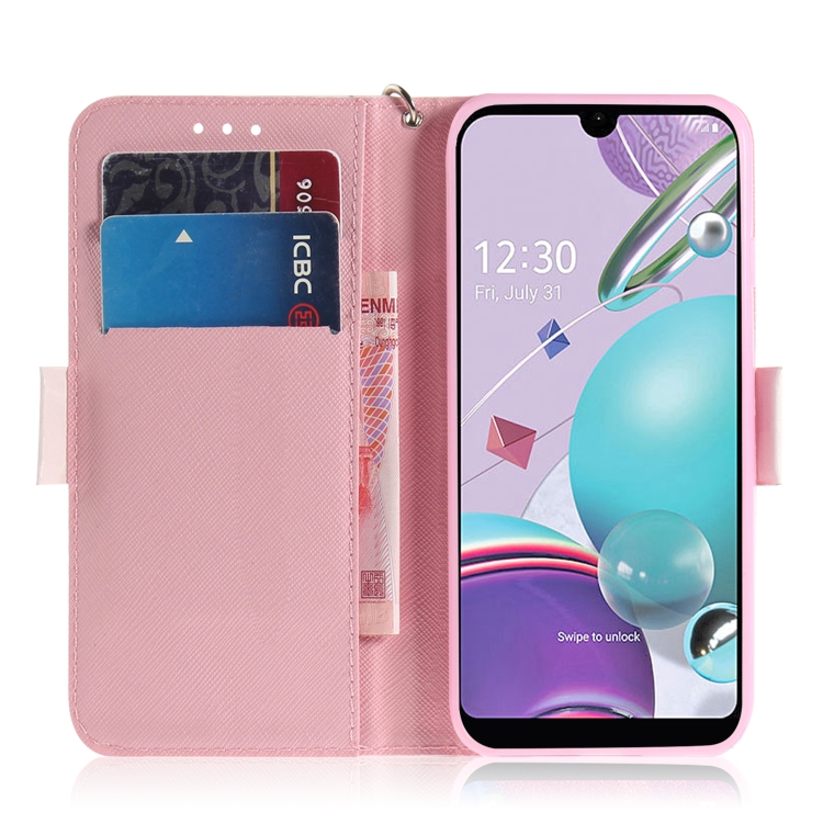 Funda de Cuero para LG K31 con Tapa Horizontal, Dibujo 3D, Soporte, Ranuras y Cordón (Magnolia)
