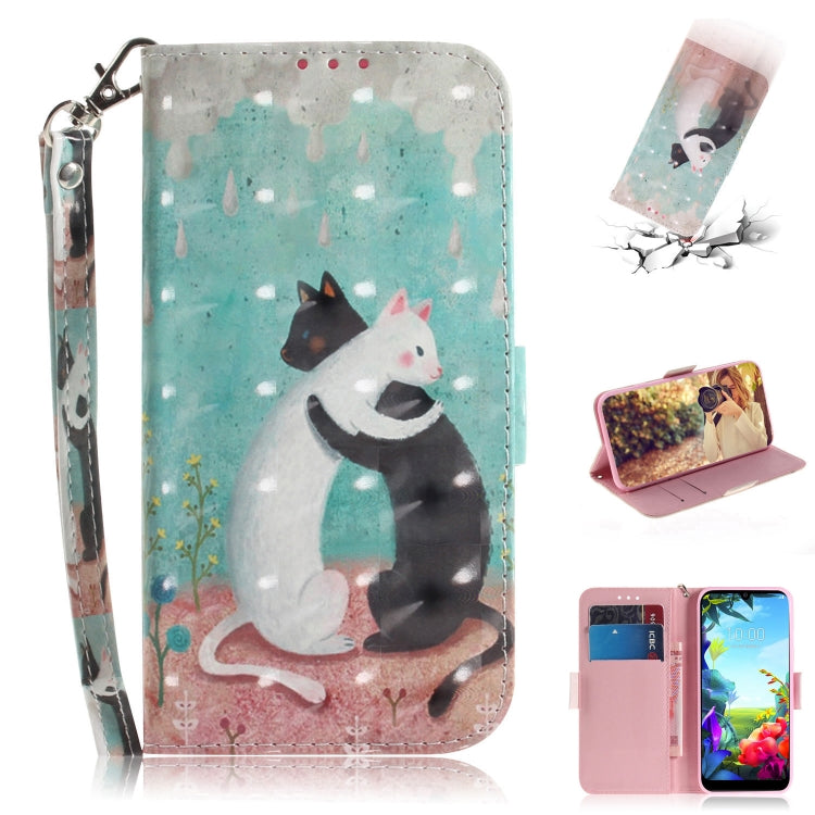Funda de Cuero para LG K40S 3D con Patrón Magnético, Tapa Horizontal, Soporte, Ranura para Tarjeta y Billetera (Gato Blanco y Negro)