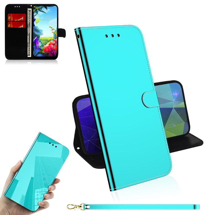 Estuche de Cuero Abatible Horizontal para LG K40S con Soporte, Ranura para Tarjeta y Billetera (Verde Menta)