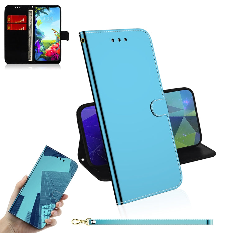 Funda de Cuero para LG K40S con Tapa Horizontal Magnética, Espejo, Soporte, Tarjetero y Billetera (Azul)