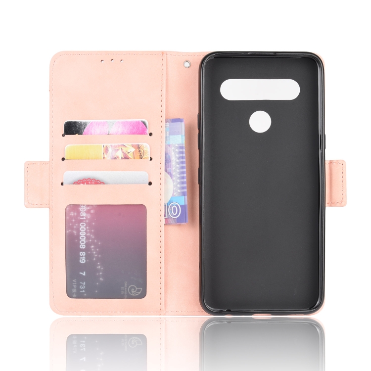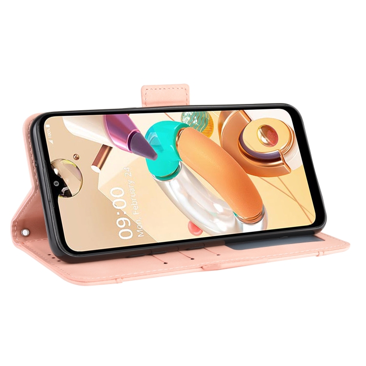 Estuche de Cuero para LG K41S K51S con Diseño de Pantorrilla, Soporte, Ranura para Tarjeta y Marco de Fotos (Rosa)