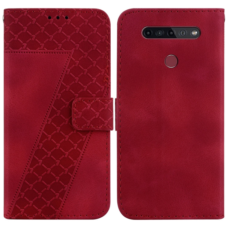 Estuche de Cuero para LG K41S y K51S en Relieve Forma de 7 (Rojo)