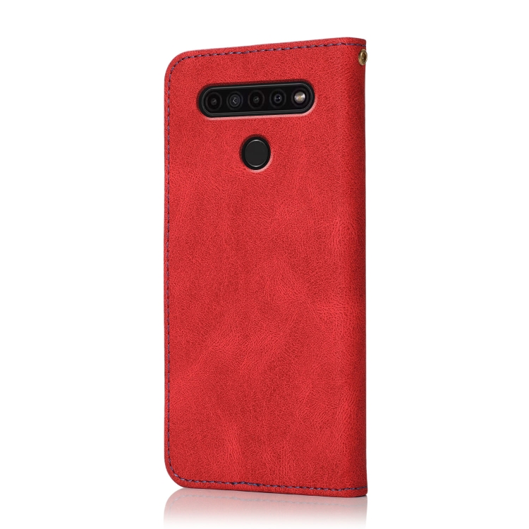 Estuche para Teléfono LG K41S K51S Cuero con Costuras Dos Colores (Rojo Azul)