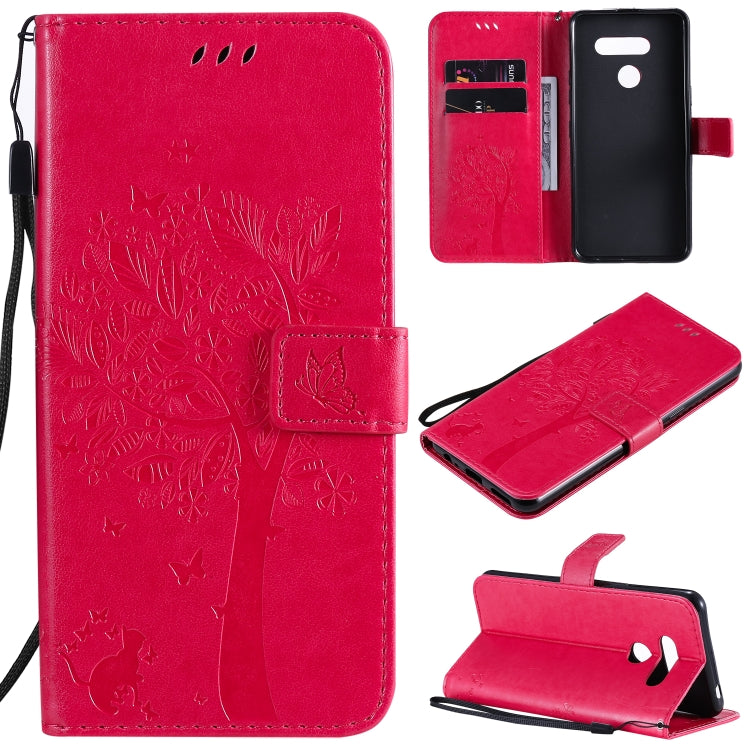Funda de Cuero para LG K41S K51S con Tapa Horizontal, Soporte, Ranuras y Cordón (Rosa Roja)