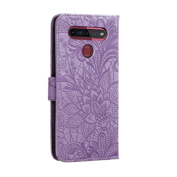 Funda de Cuero LG K41S K51S con Tapa Horizontal Soporte Ranuras Tarjetas Billetera Marco Fotos (Púrpura)