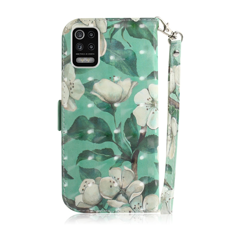 Funda de Cuero para LG K42 con Tapa Horizontal, Soporte, Ranuras para Tarjetas y Cordón (Flor de Acuarela)