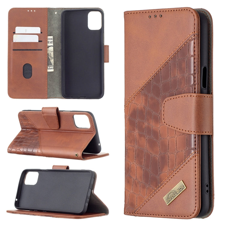 Funda de Cuero LG K42 Cocodrilo Textura Horizontal Flip con Billetera y Soporte (Marrón)