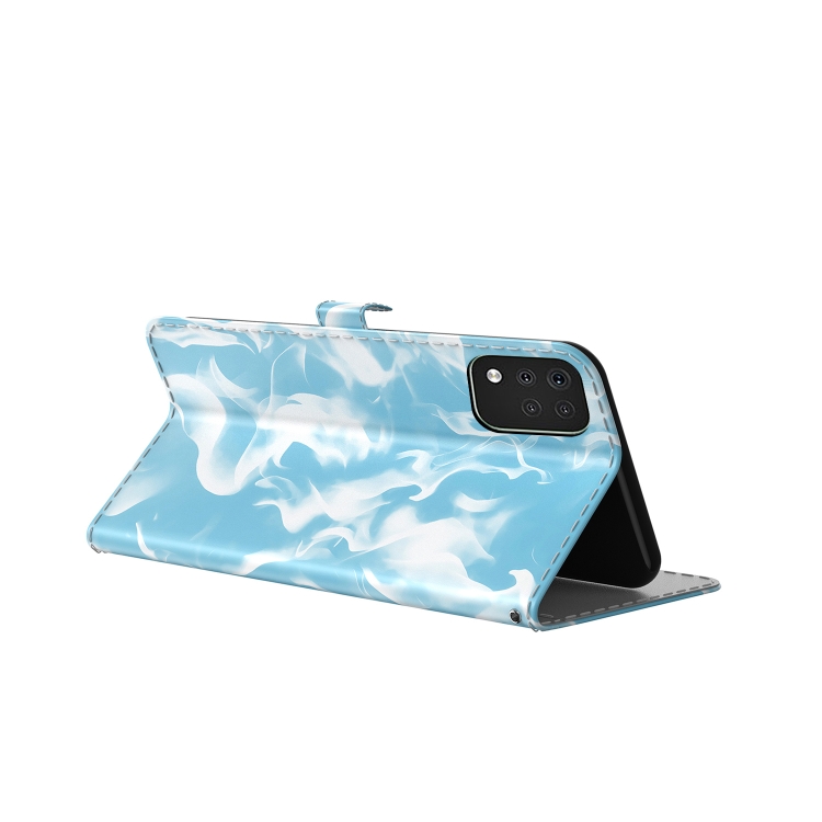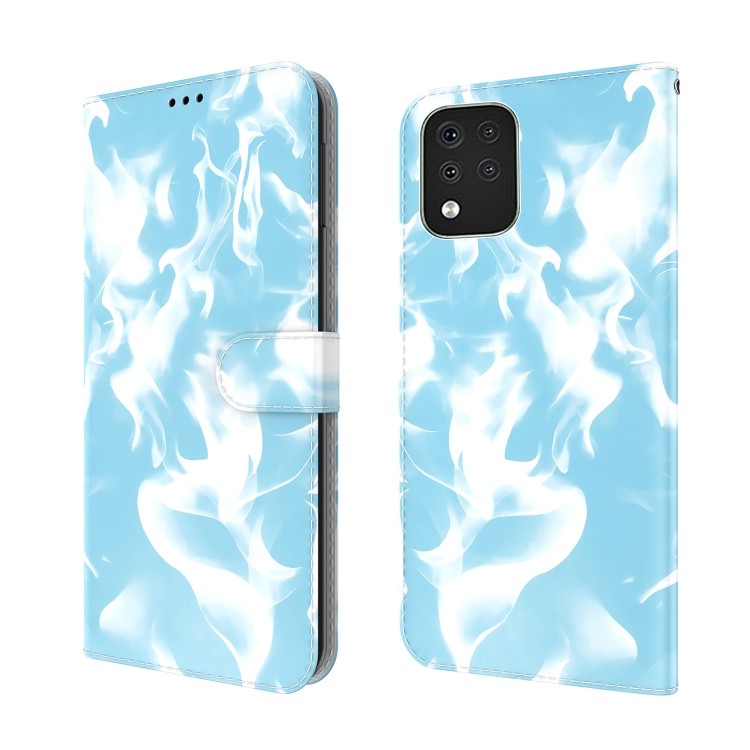 Funda de Cuero Horizontal para LG K42 Nube Nube Pattern con Soporte y Ranura para Tarjeta (Sky Blue)