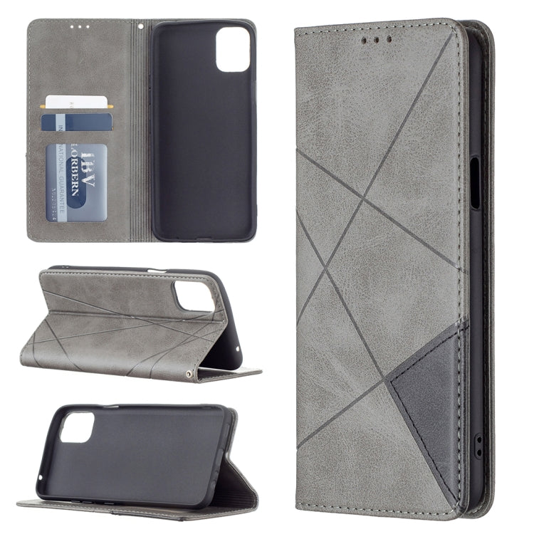Funda Magnética Horizontal Flip para LG K42 Rhombus Texture con Soporte y Ranuras para Tarjeta (Gris)