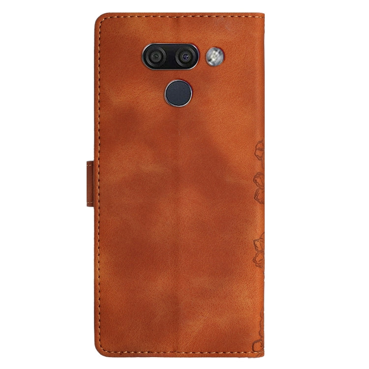 Funda para Teléfono LG K50 Cherry Blossom Butterfly Skin Feel PU Relieve (Marrón)
