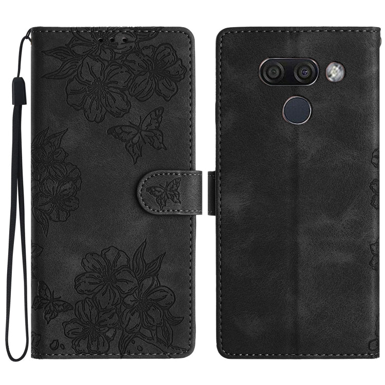 Funda para Teléfono LG K50 Cherry Blossom Butterfly Skin Feel PU en Relieve (Negro)