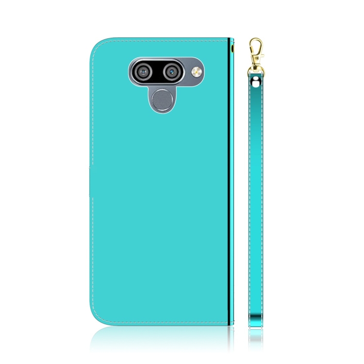 Funda de Cuero para LG K50 con Tapa Horizontal, Espejo Imitado, Soporte, Ranuras para Tarjetas y Cordón (Verde Menta)