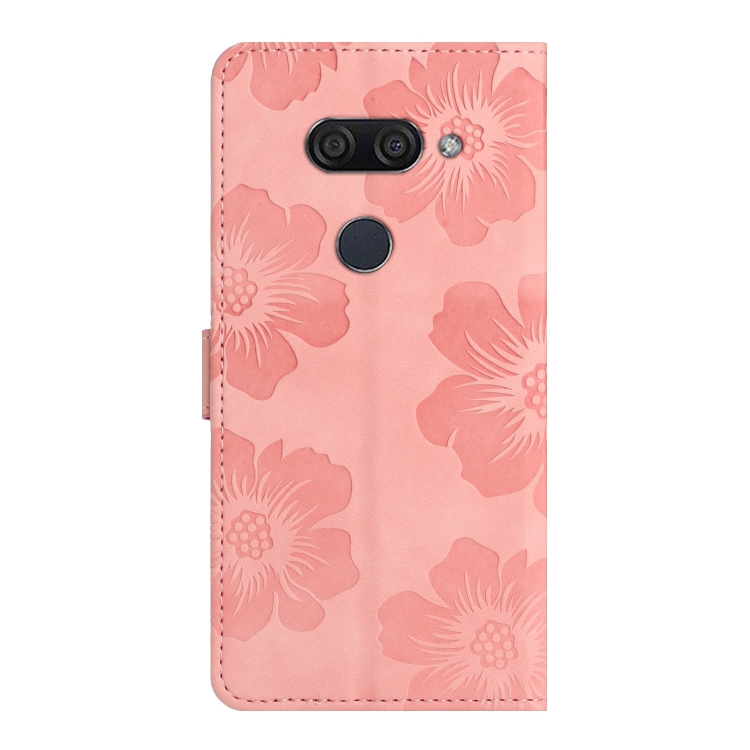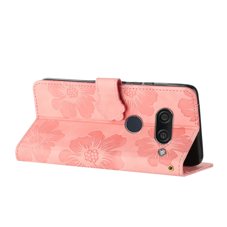 Funda de Cuero para LG K50 con Estampado de Flores en Relieve (Rosa)