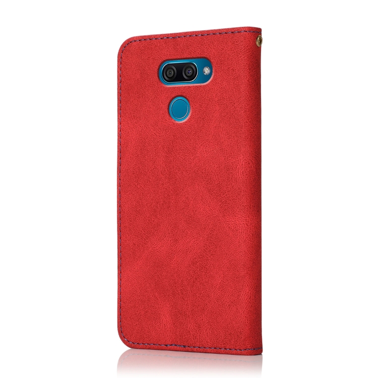 Estuche para Teléfono LG K50 / Q60 de Cuero con Costuras Dos Colores (Rojo Azul)