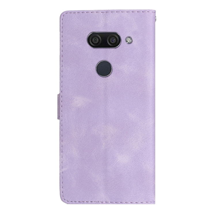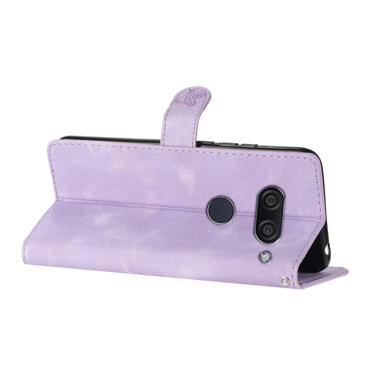 Funda de Cuero para LG K50 / Q60 con Estampado de Mariposa y Flores (Púrpura)